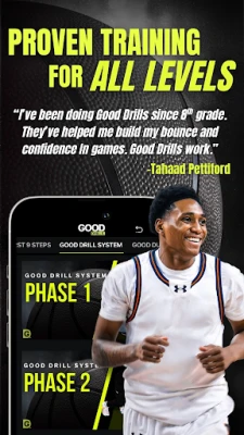 Good Drills is the basketball training app designed to help you build real-game athleticism, skills, and confidence—on and off the court. Whether you're trying to dunk, improve your handles, or level up your game IQ, our system helps players at all levels get better results with just 4 sessions per week.