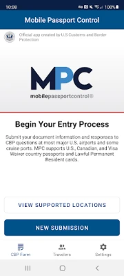 Mobile Passport Control (MPC) is an official application created by U.S. Customs and Border Protection that streamlines your CBP inspection process at select U.S. entry locations. Simply complete your travel information, answer CBP inspection questions, capture a photo of yourself and of each member of your group, and follow the instructions provided on your receipt.