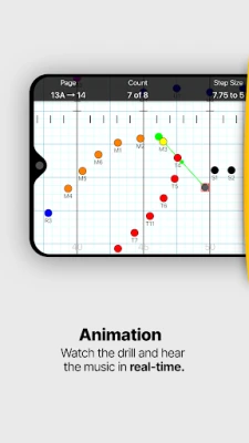 • Watch the drill animation while listening to the music from any perspective (performer or director).