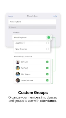 • Use Live Attendance to get a real-time view of who is at rehearsal and who is not.
